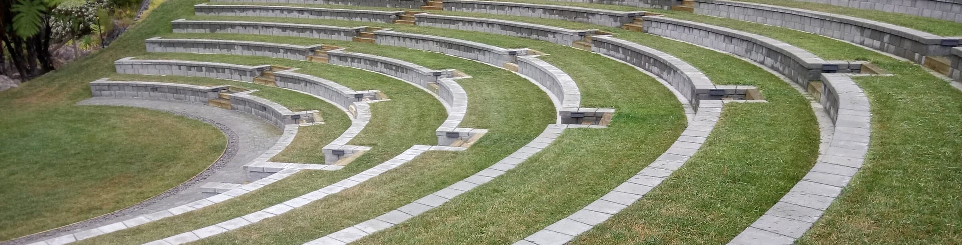 Eventually the terrace idea re-emerged, particularly as using the slopes for audience seating was a rather uncomfortable option. Many older people would bring their folding chairs and crowd onto the narrow flat area at the top of the slopes. There had to be a better way. After several years in the wilderness with an idea that didn’t have a plan and inspections by various possible plan makers and builders who either weren’t really interested or put it in their “too hard basket”, the project was going nowhere. Then at last a designer drew a plan and a landscaper was keen to do the job. Three funding sources were contacted and at a meeting held on site, they worked out how it could be funded and there was general enthusiasm for the project.